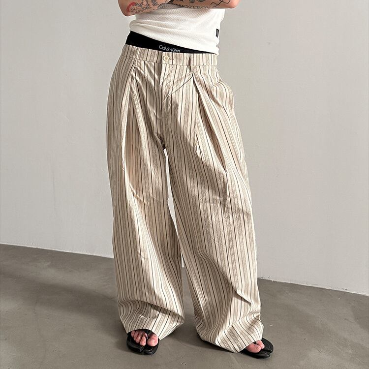 脚長効果が期待できるワイドシルエットで、美しいAラインの着こなしが完成します。