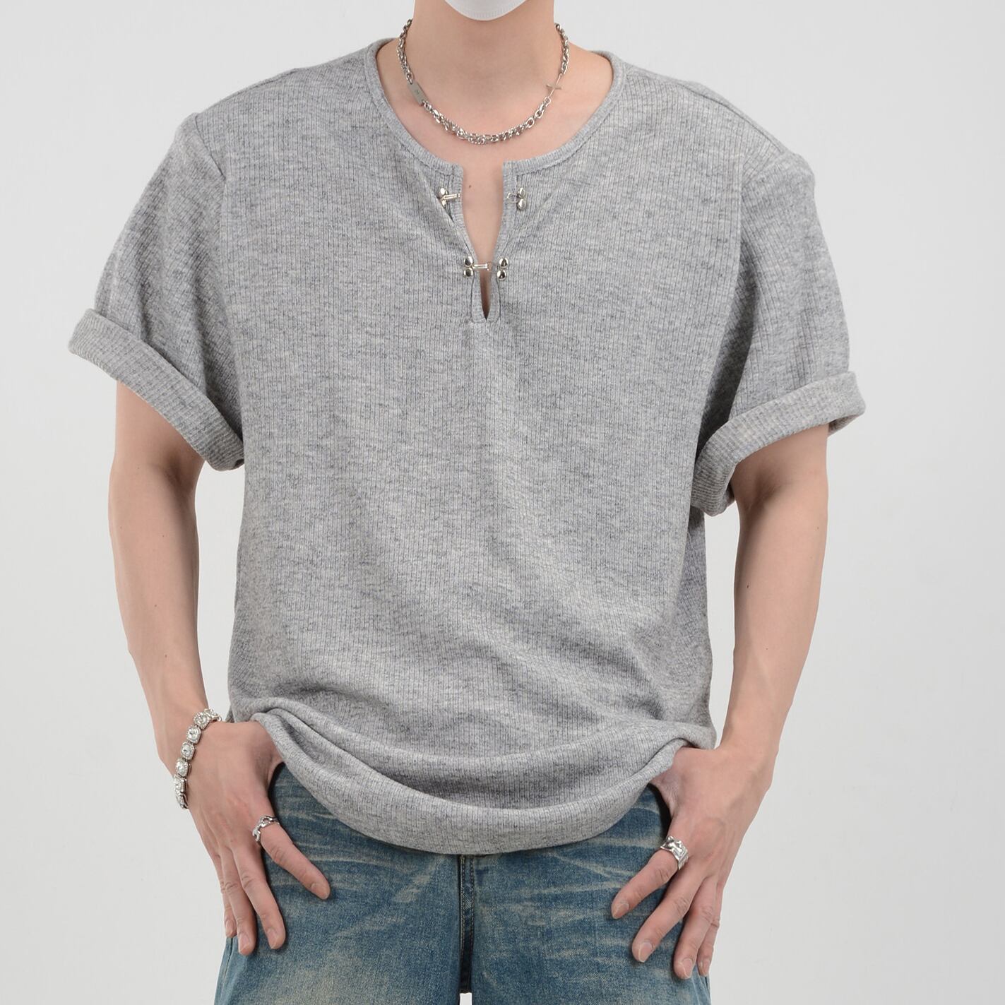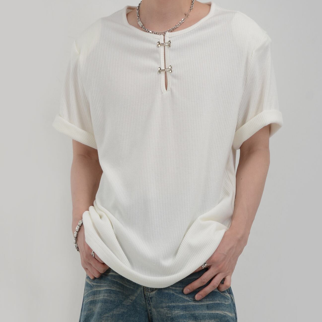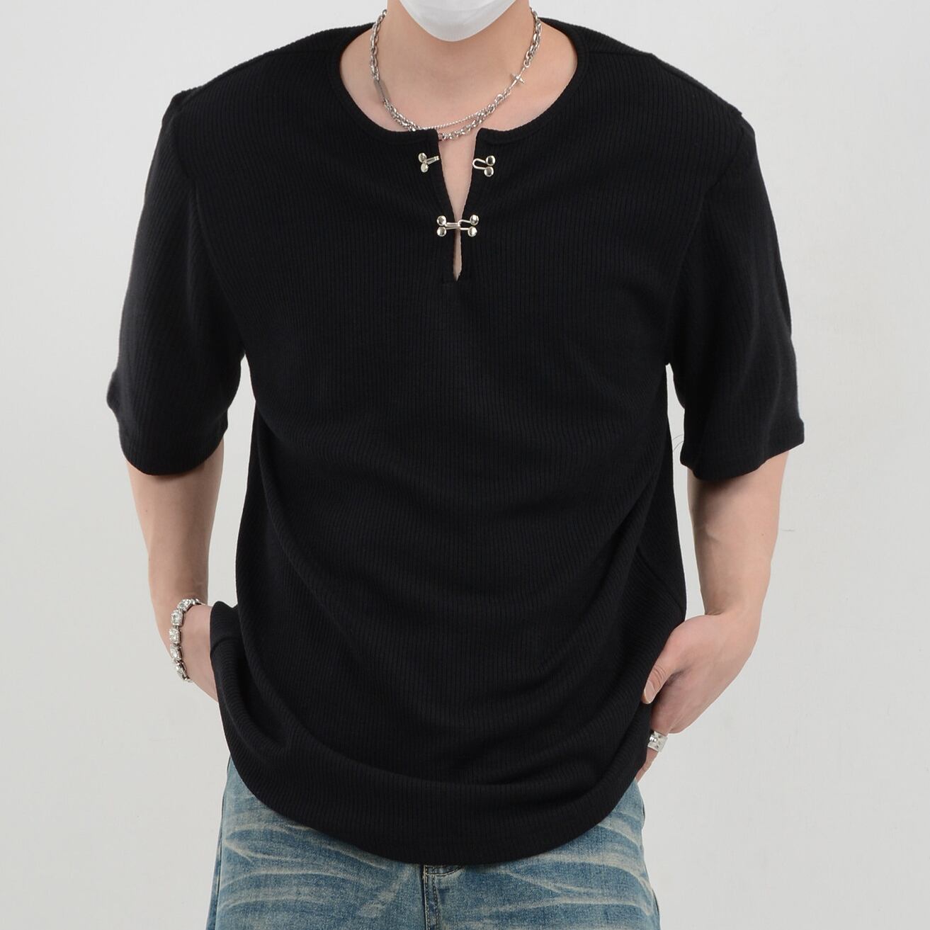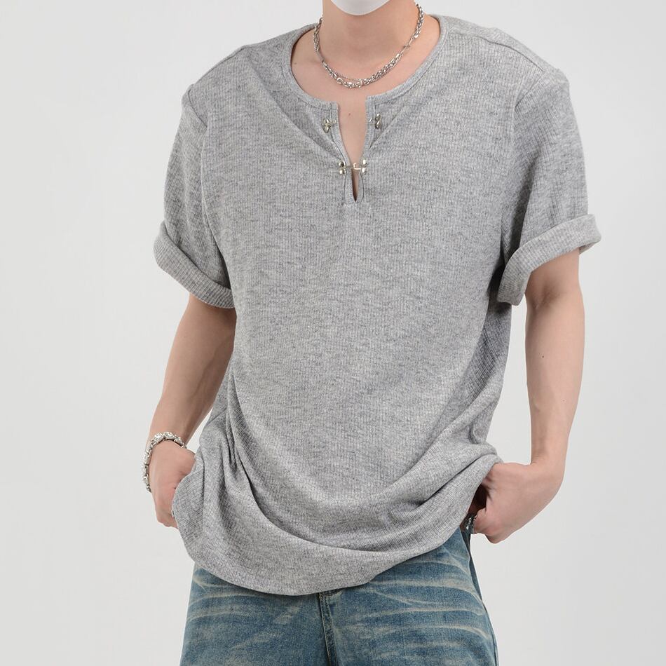 ヘンリーネック 半袖 リブ Tシャツ 10134