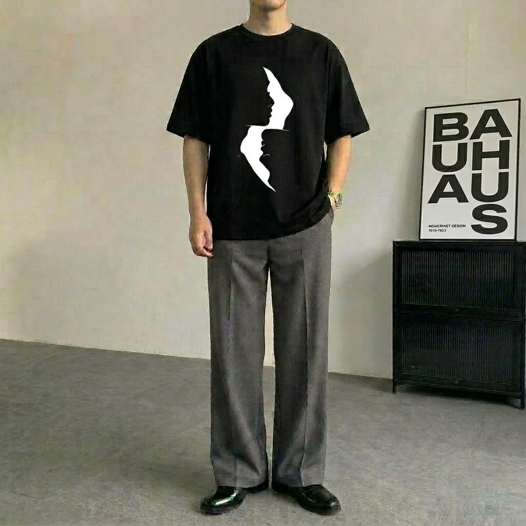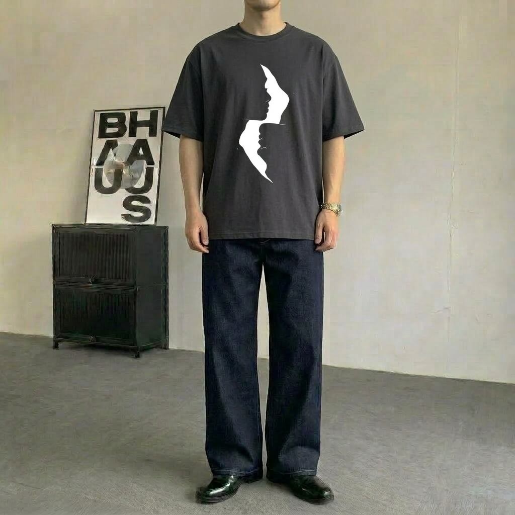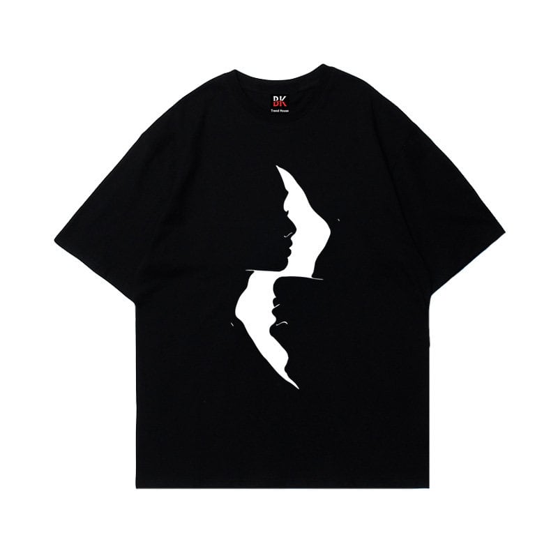 半袖 オーバーサイズ モノトーンフェイスプリント Tシャツ 10171