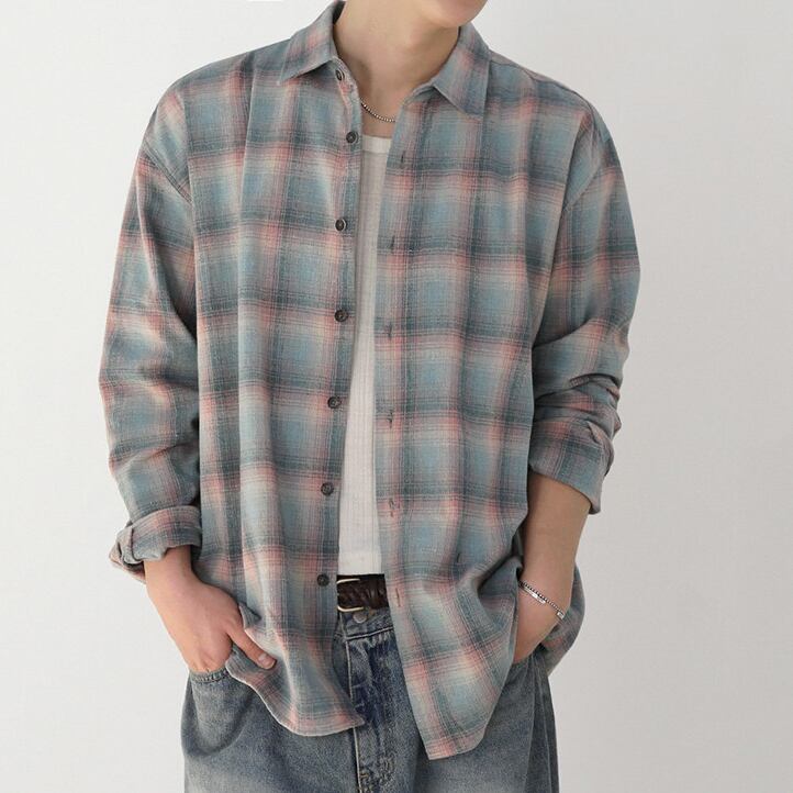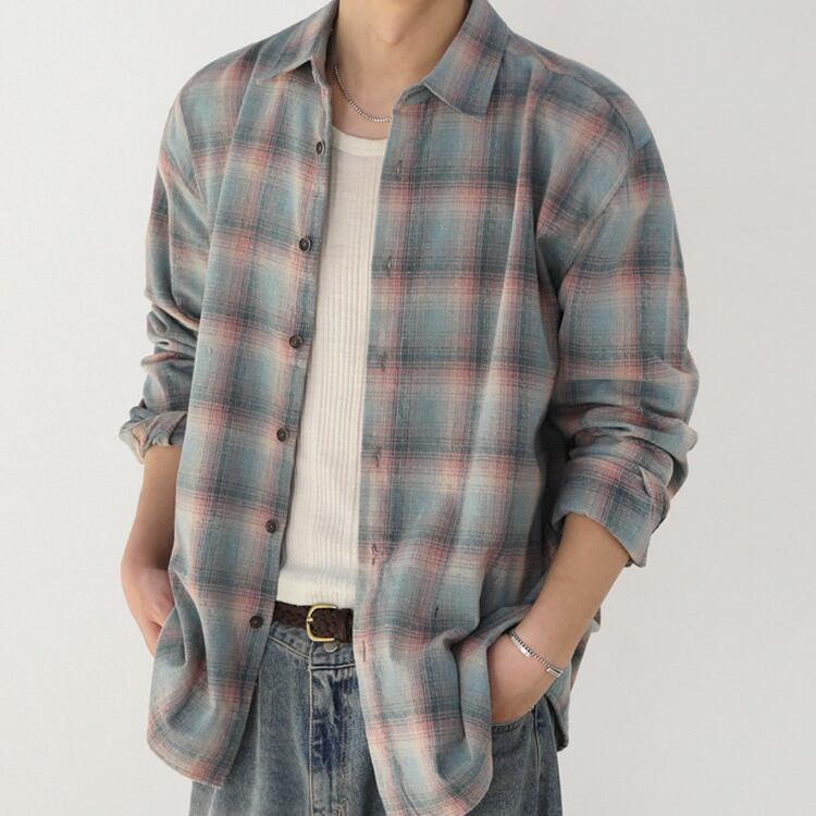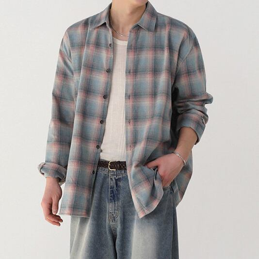 落ち着いた色合いのチェック柄が、大人カジュアルなスタイルを演出します。