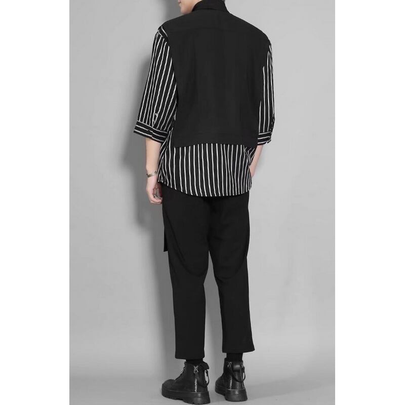ブラックステッチストライプシャツ シャツ 半袖 10023