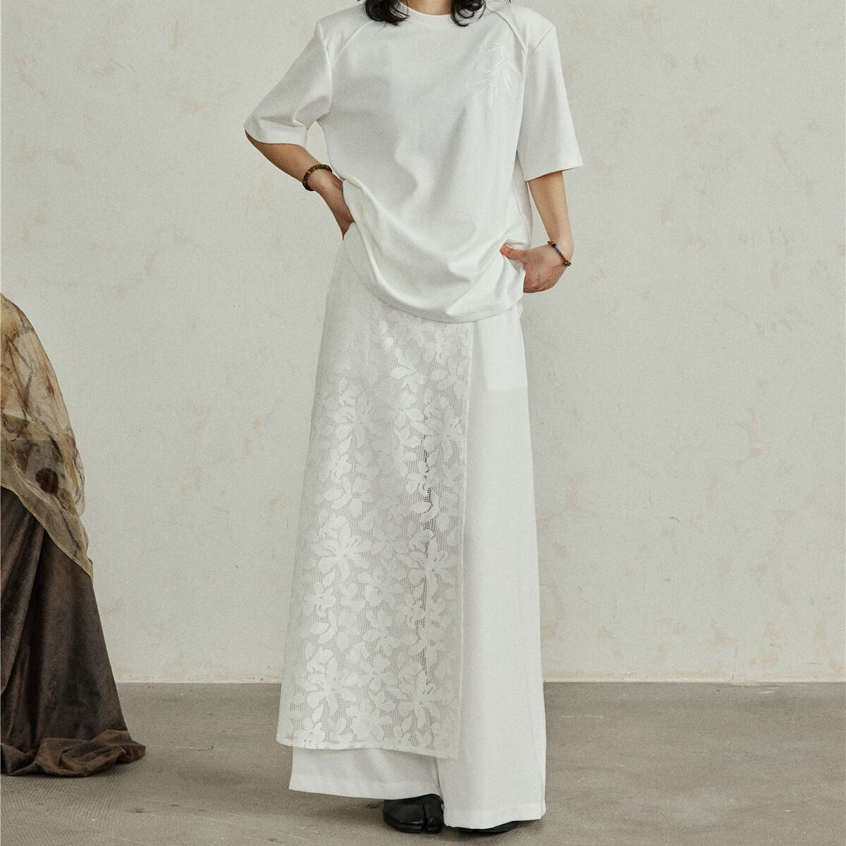 花柄デザインレイヤードパンツ ワイドパンツ 10069