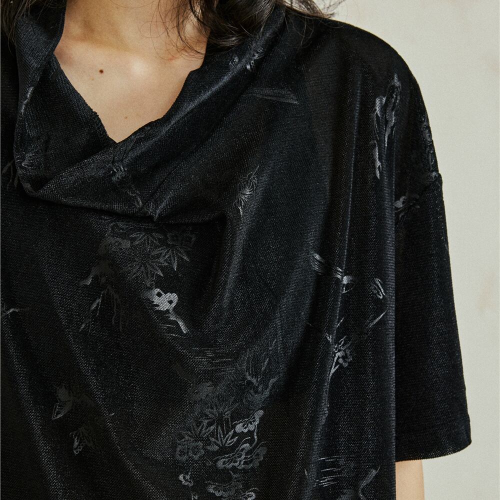 チャイニーズダークパターントップス 半袖 10072